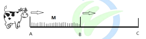 假设牧场原有草量是 M(即 AB 段长),牛从最左端 A 处开始向右吃草,草从 B 段开始向右 生长,经过 T 天后,在 C 处草被吃完了。相当于草从 B 点到 C 点,同时牛从 A 点到 C 点,很明 显与行程问题中的追及问题模型是一样的。因此我们可以用追及公式来解决牛吃草问题。